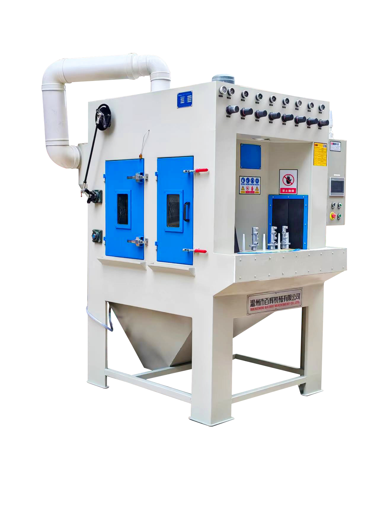 5,本機(jī)配有高效除霧風(fēng)機(jī),保證噴砂倉視野清晰;