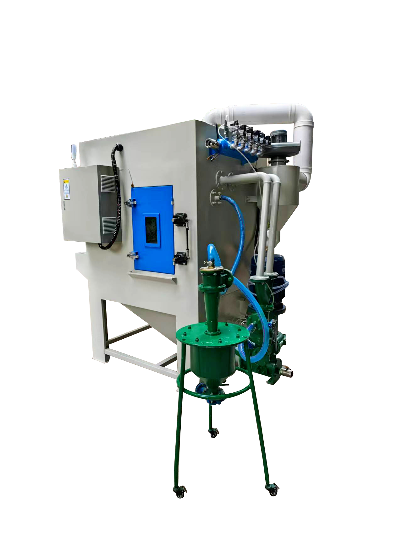 3, 配置專業(yè)的砂水泵,能高效混合磨料,噴砂后的產(chǎn)品手感更細(xì)膩、光澤度更好,和干式噴砂效果有明顯區(qū)別;