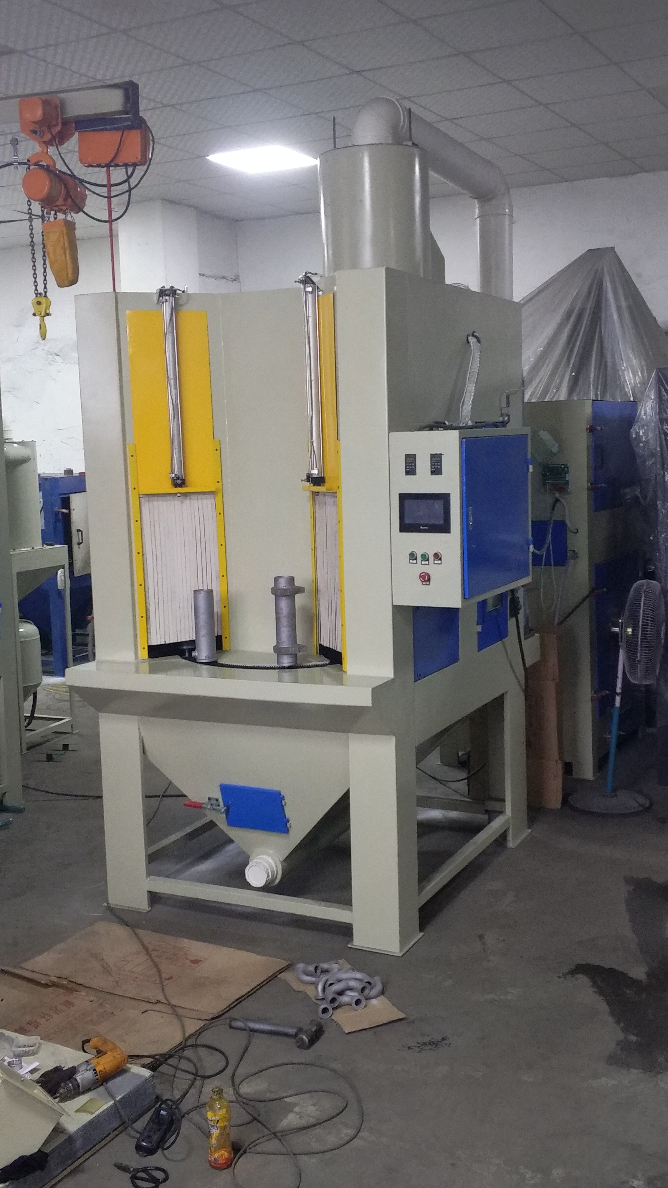 6、本機配置有上旋風分離器,可實現磨料與粉塵的有效分離,保證產品加工的高質高效,同時最大限度節(jié)省磨料的消耗,提高倉內可見度和減少環(huán)境污染。